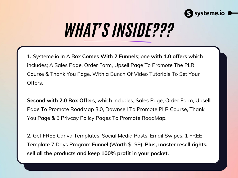 Systeme.io In A Box Offer Maximize Your Profits: High-Converting Funnels for 1.0 & 2.0 Offers (PLR Rights, Tutorials, Bonuses Included)